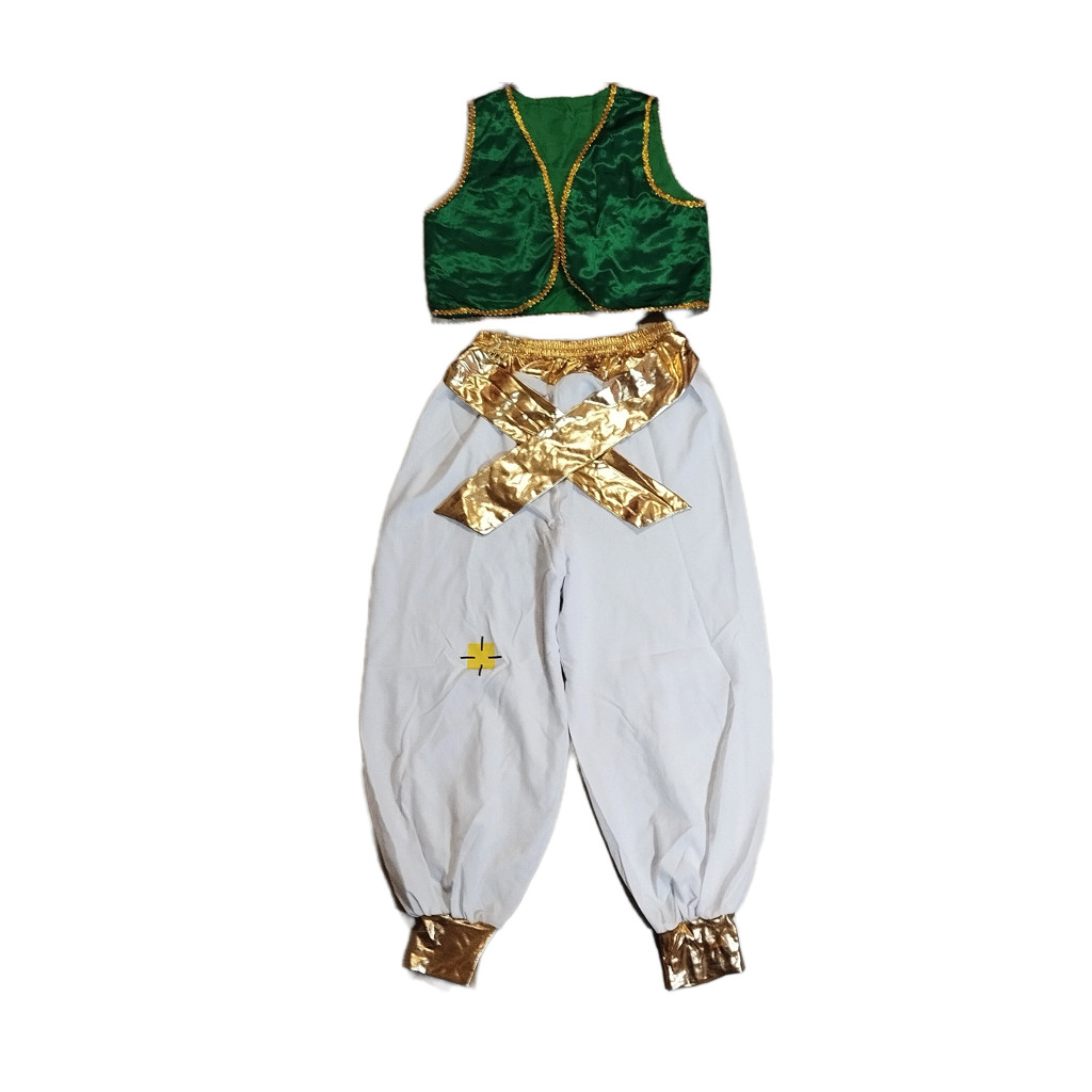 Mellény fényes anyagú, zöld színű. Arany díszítésekkel.