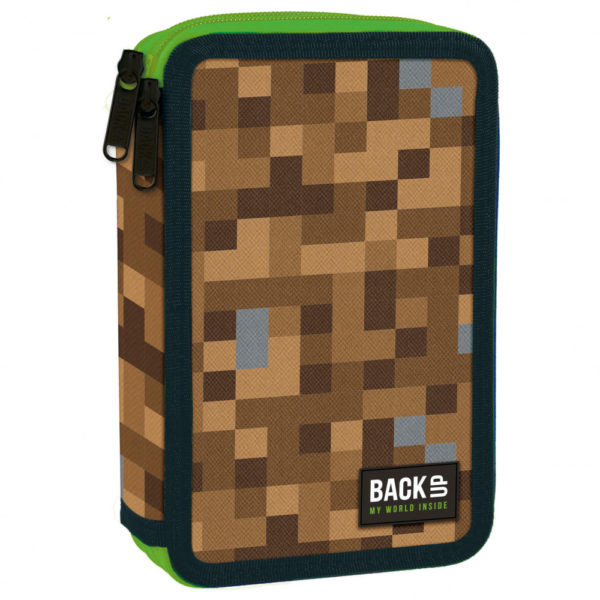 A Minecraft hangulatú zöld és barna kockás tolltartó a számítógépes játék kedvelőinek készült.