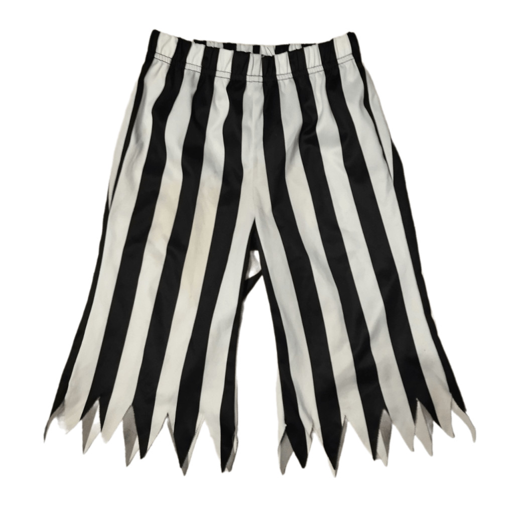 Kalóz csíkos jelmez nadrág.Méret nélküli.A lemért cm-t vedd figyelembe.hossza: 46 cmderékbősége: 23 cmx 2max nyúlása: 40 cm x 2Anyaga rugalmas.Színe fekete,fehér.